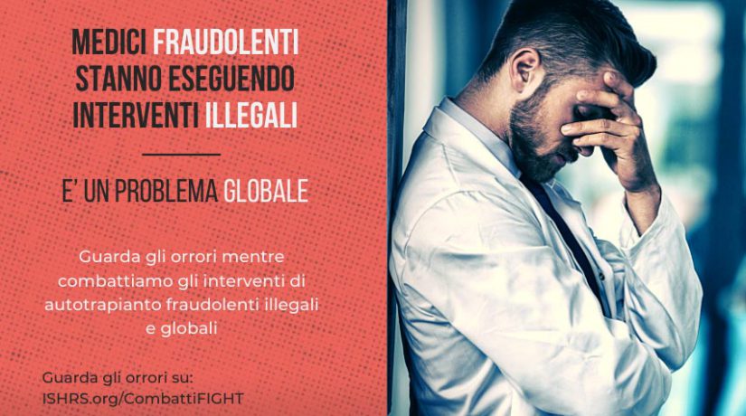 La ISHRS Società Internazionale di Chirurgia della Calvizie ha lanciato una campagna denominata FightTheFight volta a combattere l’abusivismo e l’illegalità in questo settore. Sempre più spesso veniamo a conoscenza di cliniche estere in cui vengono eseguiti interventi di Chirurgia della Calvizie da personale non autorizzato. La Chirurgia della Calvizie è un vero e proprio intervento Chirurgico e deve essere sempre eseguito da un Medico Chirurgo abilitato e iscritto all’ordine dei Medici.